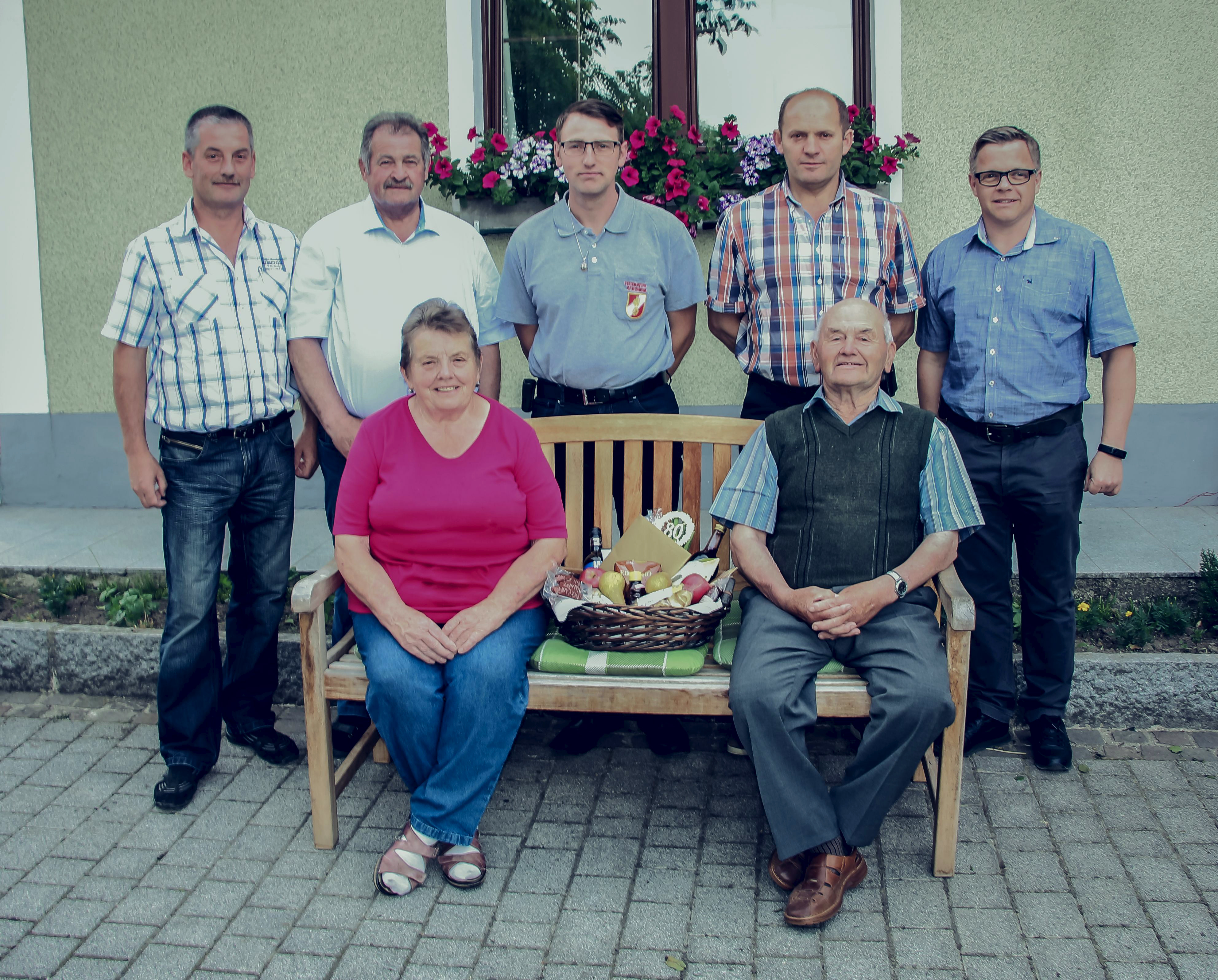 Im Namen der Feuerwehr Stroheim wurde ihm ein Geschenks Korb von Kommandant Wiesinger Wolfgang überreicht.