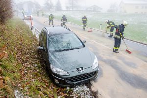Die Stroheimer Feuerwehren wurden am 2. Dezember um 11 Uhr zu einem Verkehrsunfall in Gschnarret gerufen. Eine Autofahrerin kam aus ungeklärter Ursache von der Fahrbahn ab, überfuhr einen Verkehrs-Leitpflock und kam etwa 50 Meter entfernt am Straßenrand zu stehen.